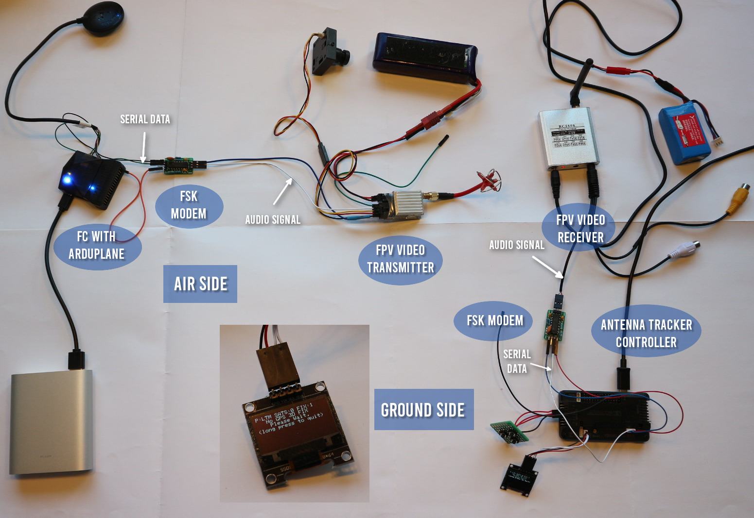 Typical use-case is antenna tracking when serial telemetry data from Flight Controller (FC) are transformed by Frequency Shift Keying modulation (FSK) modem to sort of audio signal, that is transferred by audio channel of video transmitter to video receiver on ground side. Consequently it’s converted back to digital signal by other FSK modem and processed in antenna tracker (AT) and possibly in Ground Control Station (GCS).
