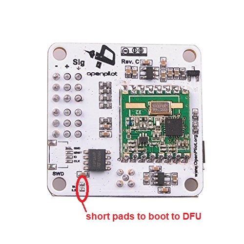 You can short the pads in any particular way (either with a wire, solder joint, or something else). Detailed instructions are available on the Revo Mini LibrePilot Wiki. A small wire is the easiest way to short the device. You can also power the device via USB first, and then short the pads if using a wire. Once you have the device in DFU mode and connected to your machine continue with the following steps to load ArduPilot firmware onto ChibiOS boards.