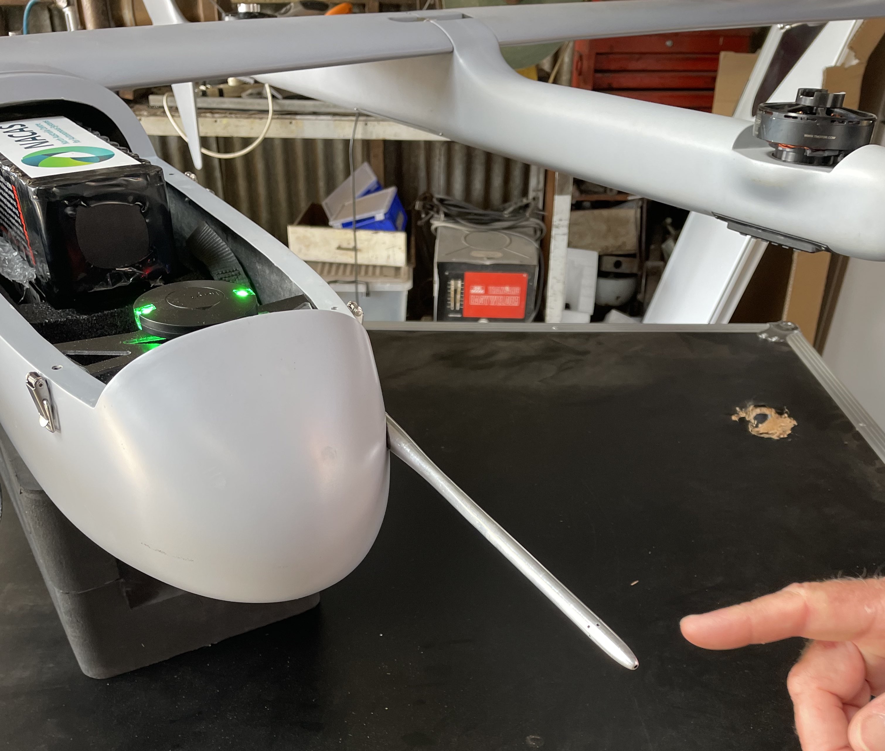 The ideal location would be extended well beyond the nose of the aircraft or wing leading edge, as shown below: