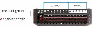 Do not connect a BEC power source to the RC IN port (black ground, red power and white signal wires from the receiver’s PPM output are connected to these RC pins)