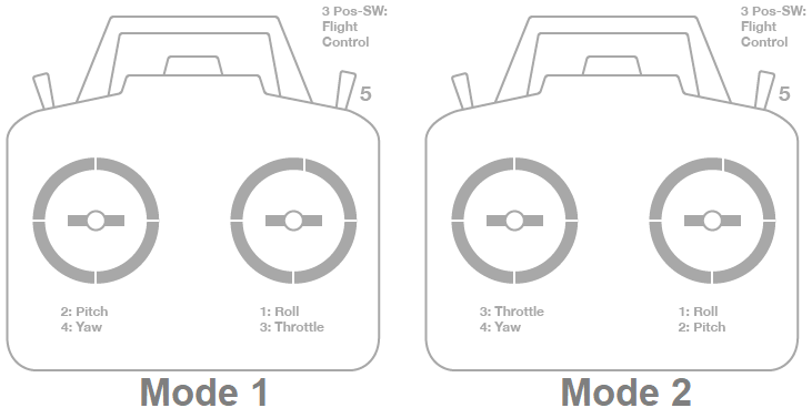 Mode 2: left stick controls throttle and yaw; the right stick will control pitch and roll.