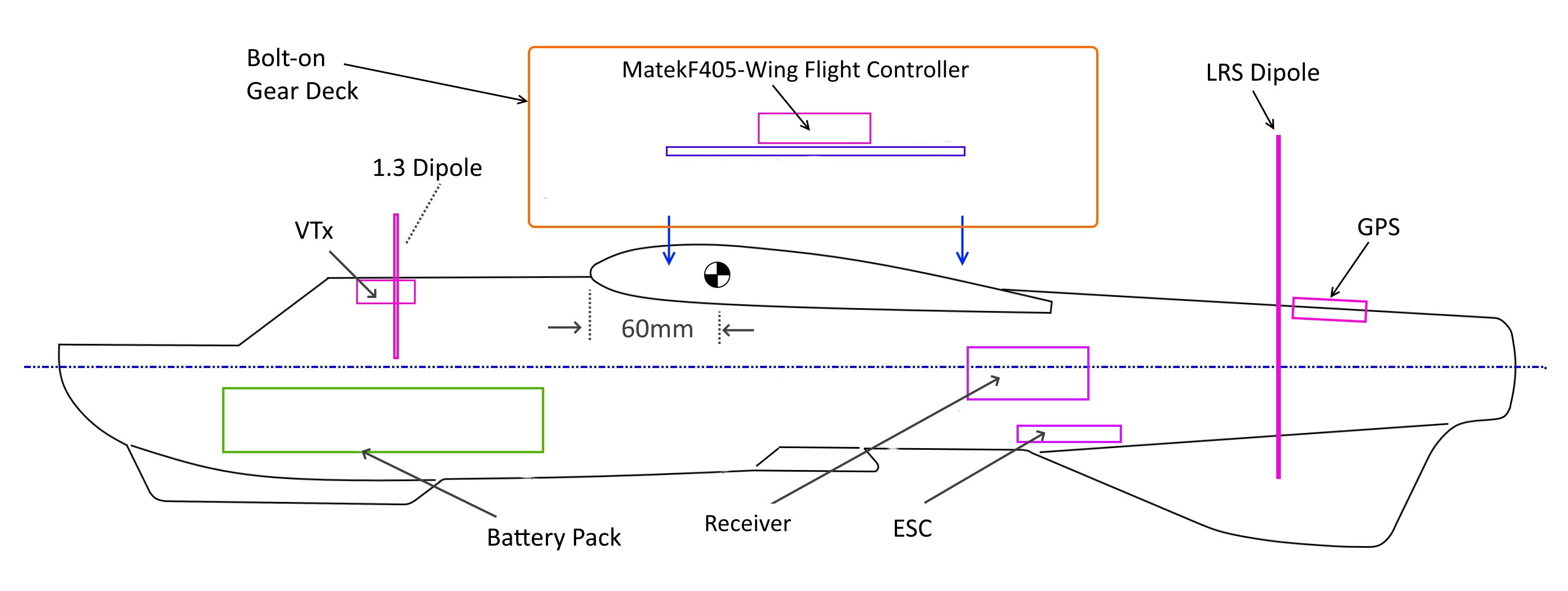 No external OSD (On Screen Display) is required since the MatekF405-Wing has it integrated.