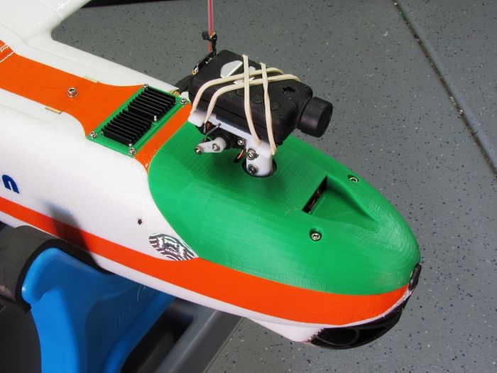 It is usually not a good idea to have the flight camera mounted on a stabilized mount since the operator will lose the feedback of the plane’s attitude while flying.
