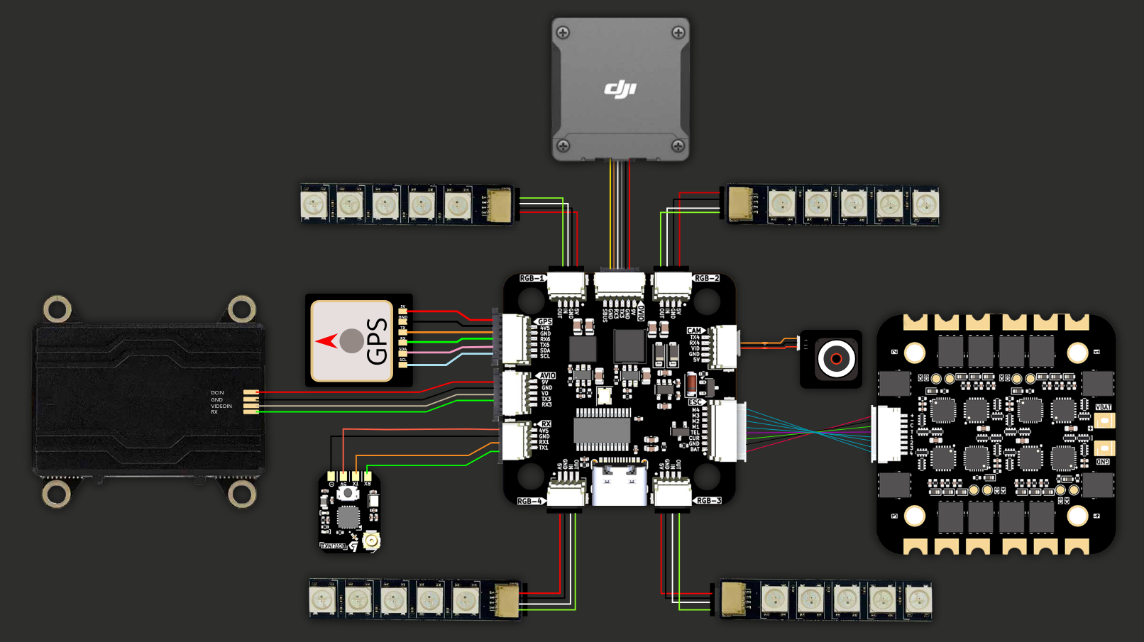 6x UARTs (for GPS, telemetry, RC, camera, etc.)
