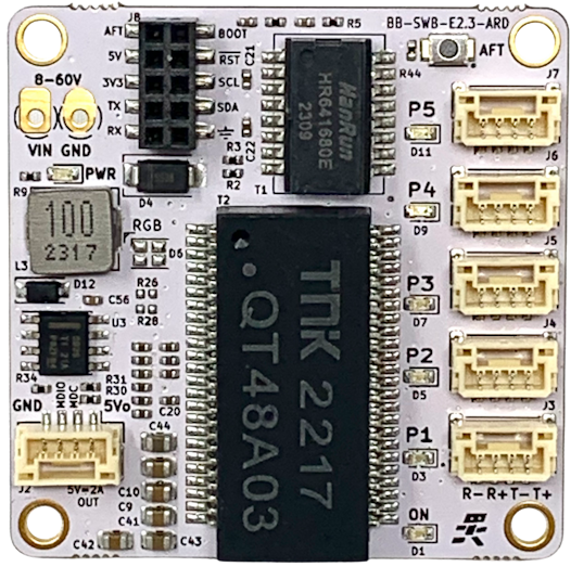 Since there are more than 2 Ethernet devices in the system, it is truly a network and to provide interconnectivity an Ethernet Switch is used. It forms the “heart” of the system. In this case, it’s a small BotBlox switch specifically designed for ArduPilot applications with convenient JST_GH 1.25mm connectors: