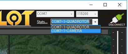• If the serial connection between the autopilot and camera is working then shortly after the camera is powered on, it will begin sending heartbeats to the autopilot and ground station which, if using the Mission Planner, will make it appear as “CAMERA” in the top-right drop-down. Selecting the CAMERA will not work though because the camera does not respond to requests for parameters