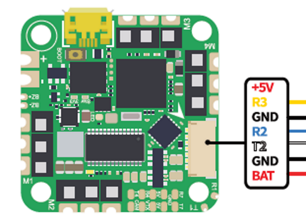 RC input is configured by default via the USART3 RX input. It supports all RC protocols except PPM. FPort and full duplex protocols will need to use instead,both RX1 and TX1.