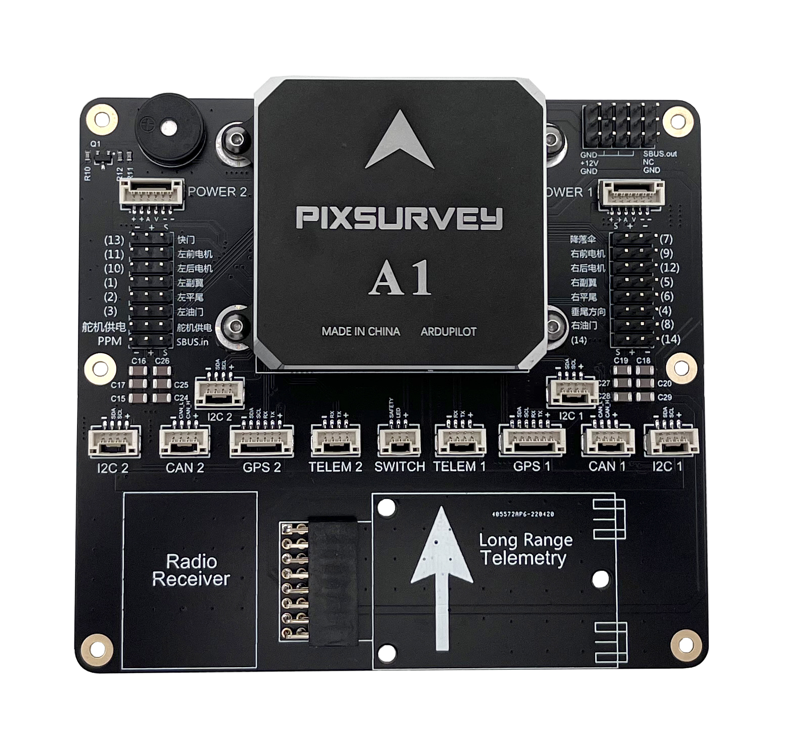 The PixSurveyA1 supports up to 14 PWM outputs. All 14 outputs support all normal PWM output formats. All FMU outputs (9-14) support DShot.