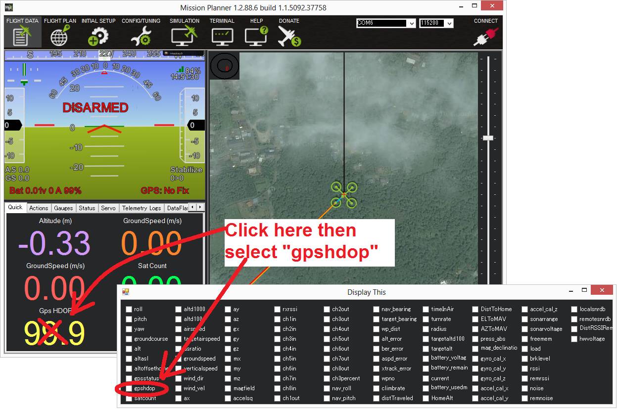 4. The first cause of the Pre-Arm Check failure will be displayed in red on the HUD window