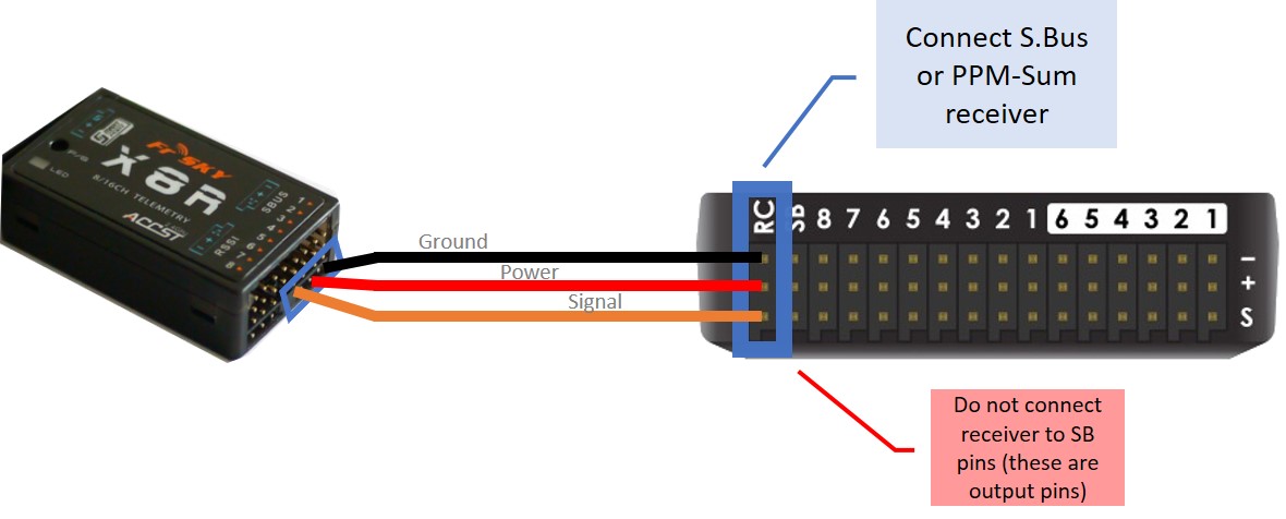 These receivers are usually connected to the RCin or SBUS input pin on the autopilot.