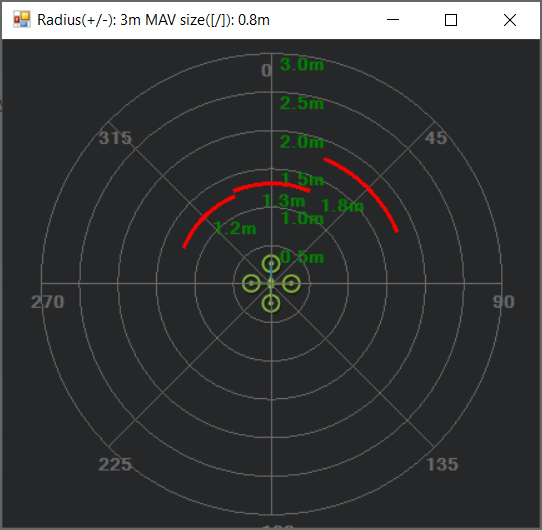 The proximity view will group every distances within 45-degrees arc together (in total 8 quadrants around the vehicle), so at most only 3 nearest obstacles will be shown at any one time on the Proximity window (since the camera’s FOV is less then 90 degrees).