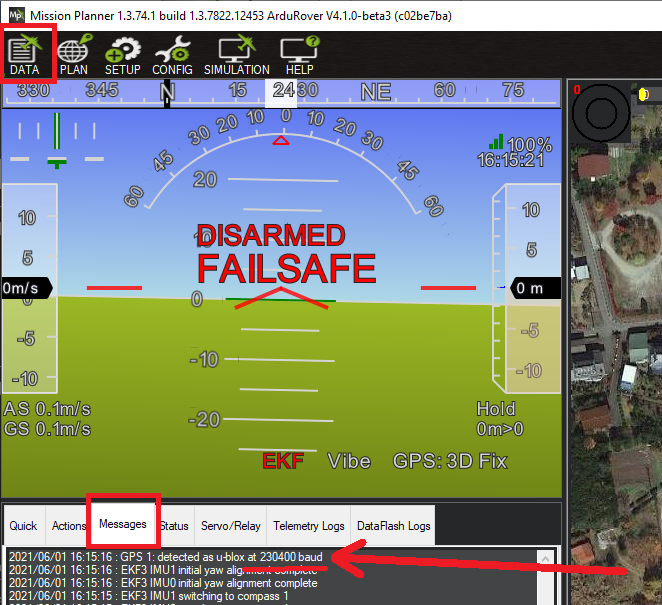 SERIALx_BAUDparameters (USB ports automatically use the passthrough port’s baud rate and do not need to be changed). The rates may be different for each port. ArduPilot will do the buffering. For example, if attempting passthrough to the first GPS, SERIAL3_BAUD should normally be set to 230400 but you may check the GPS driver’s “autobauding” by looking at the ground stations Message window soon after startup. Additionally, many sensor drivers ignore what is set for this parameter, since its hardcoded in the driver, but it MUST be set when using the passthrough feature.