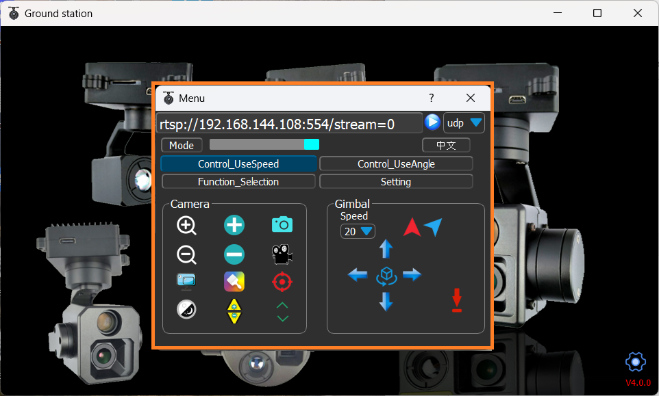 The gimbal’s IP address can be set using the “GimbalControl” application (see image above)