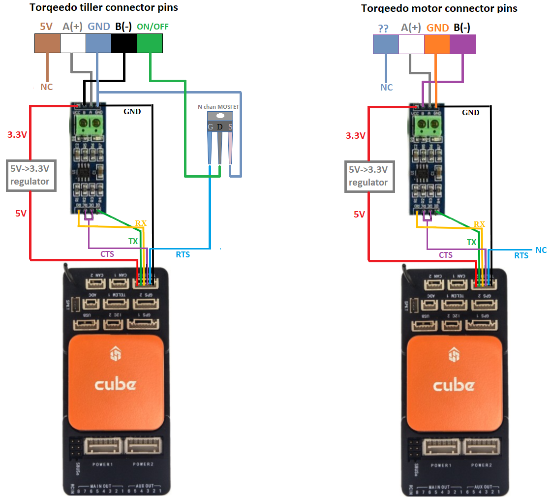 TRQD_ONOFF_PIN= 54 (AUX5) and connect the autopilot’s AUX5 pin to the interface’s board’s MOSFETTRQD_DE_PIN= 55 (AUX6) and connect the autopilot’s AUX6 pin to the RS485<->TTL converter’s DE and RE pins