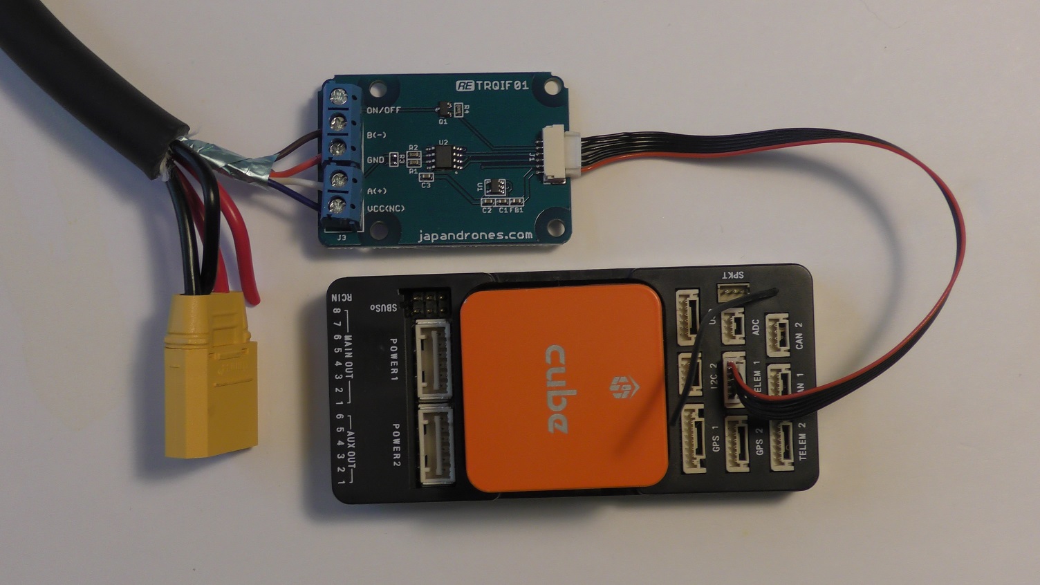 Below are pictures of the modified throttle extension cable and Japan Drones RS485-to-Serial converter board