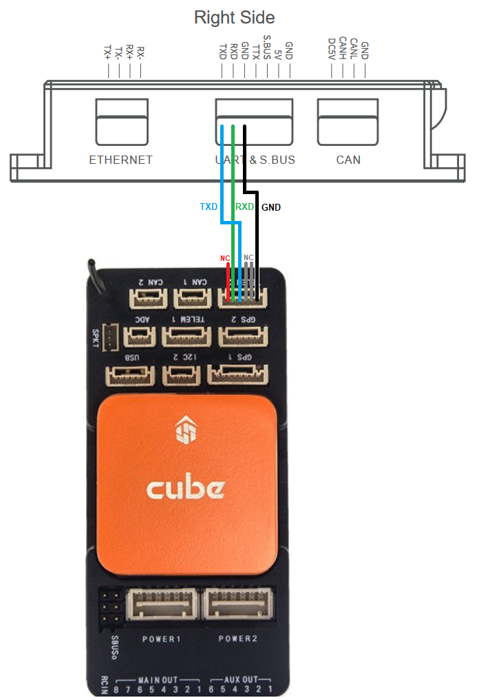 Connect one of the autopilot’s serial ports to the gimbal as shown below. The first image if for users with a “viewport” connection.