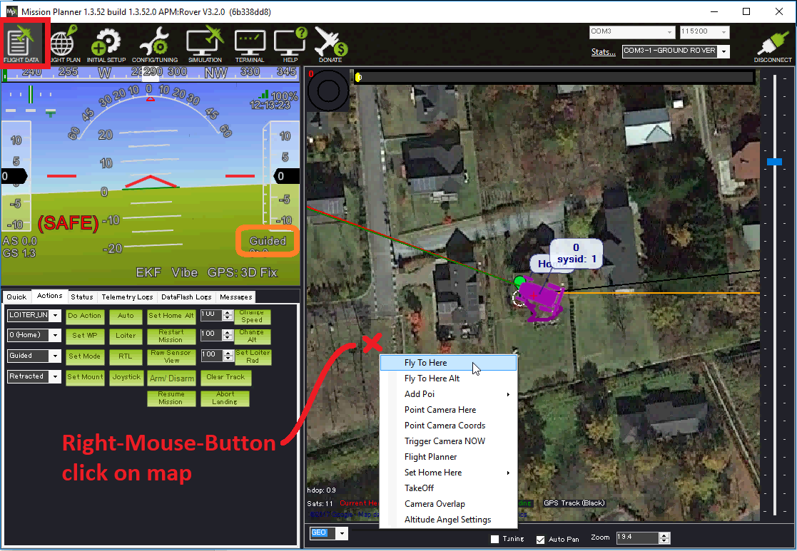 from the Flight Data screen, right-mouse-button click on the map and select “Fly To Here”.
