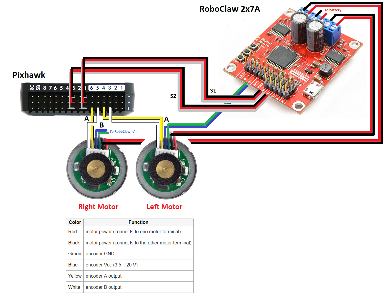 Connect the autopilot, motor driver and motors as shown below