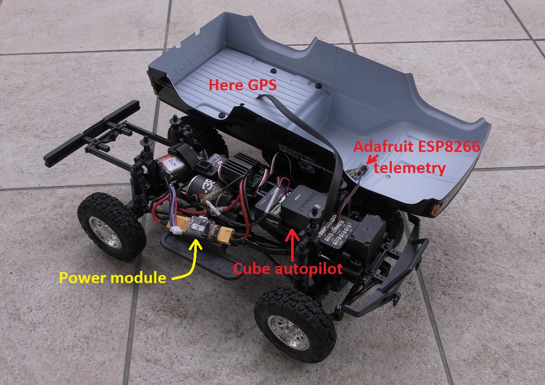 the GPS should be placed away from the motor and battery. In this example it was placed in the rear cargo bed