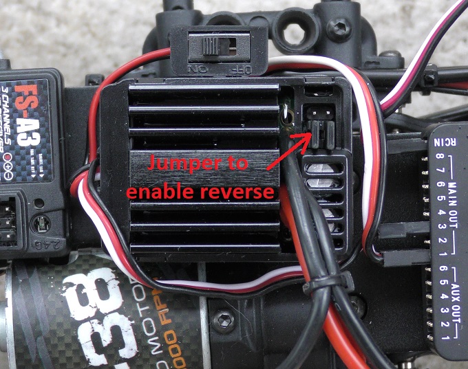 the frame apparently includes this WP-1040-Brushed ESC and the “Reverse” jumper should be set as shown below.