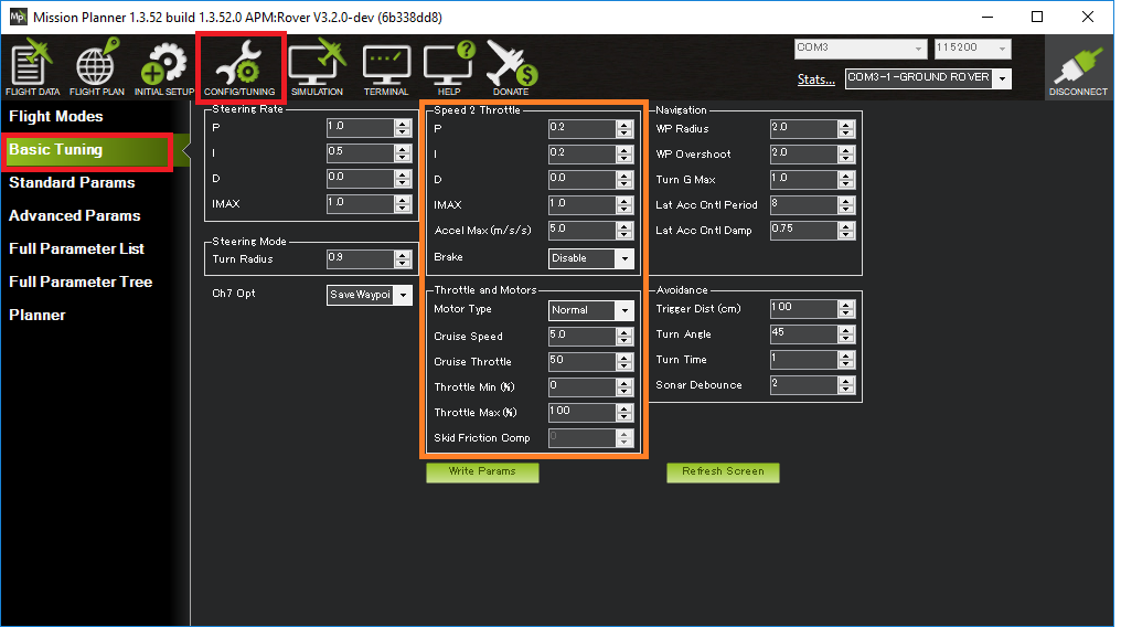 This page describes how a Rover’s speed and throttle controls can be tuned. In general it is best to tune this controller before moving on to the steering controllers.