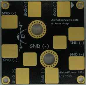 The AirbotPDB board (“10 solder pads” power distribution board) is stackable companion board (via XT150 connectors) that can optionally be used with AirbotPower.