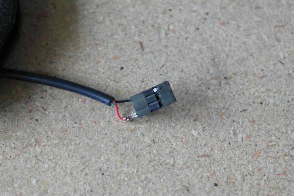 If you have the crimp tool, crimp and insert the wires into the first and third positions of a 3-position header. If you don’t have the crimp tool, solder these two wires to the ground and signal wires of a spare servo wire. Insert the ground wire into the side with an arrow so you can tell which wire is which later on.