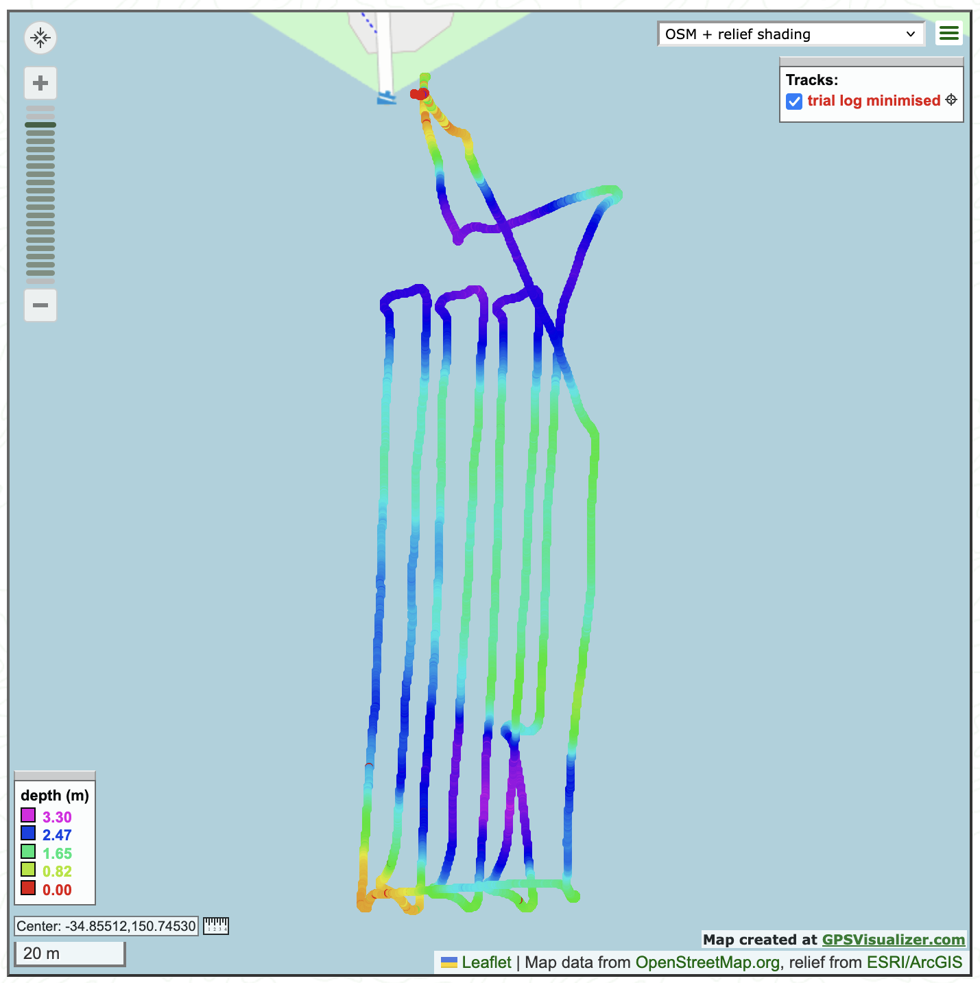 The examples here (GPS Visualizer above and Hydromagic below) were created from data collected in a quick 30 minute survey done from the comfort and safety of the shore.