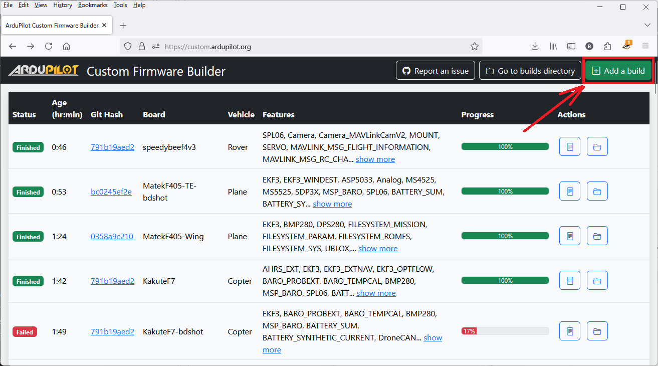 ArduPilot Custom Firmware Builder