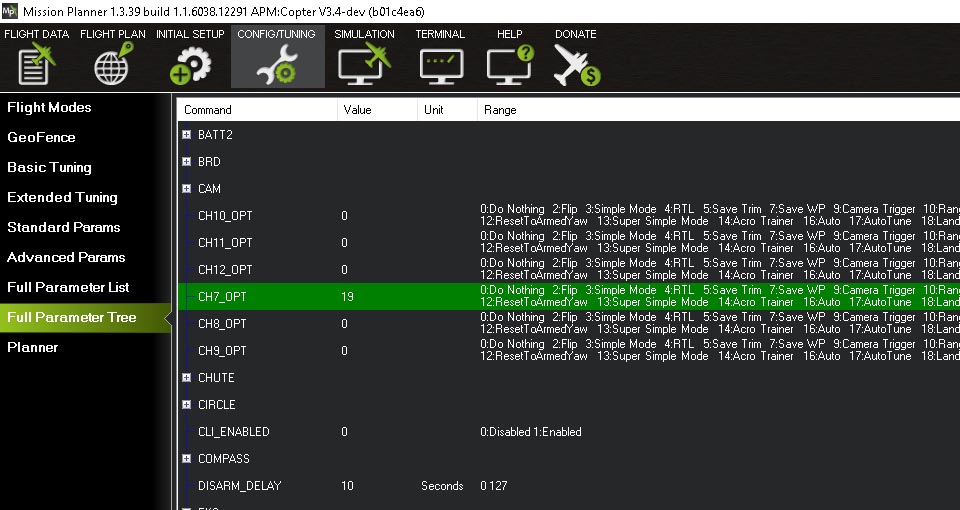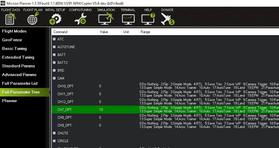3. Set CH7_OPT: Channel 7 option = 19 (EPM) (Channel 7 - 12 maybe used)