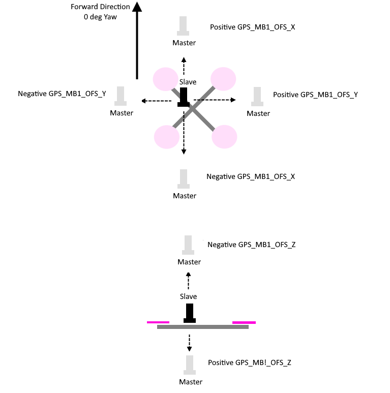 GPS2_POS_Z: offset in meters from the Center of Gravity to “Master” antenna in the Z axis (in direction up and down, positive offsets are if “Master” below the Center of Gravity.