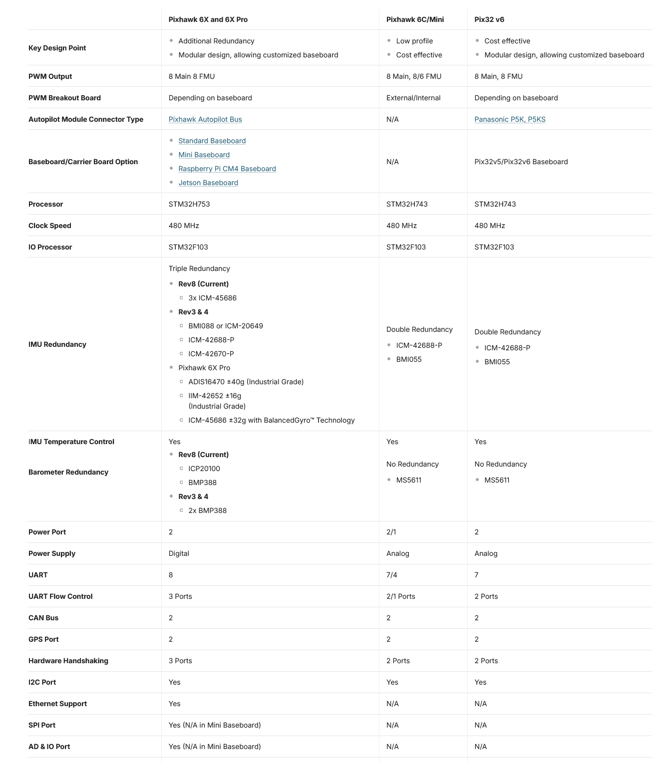 Pixhawk6X® is the latest update to the successful family of Pixhawk® autopilots made by Holybro, featuring STM32H7 cpus, vibration isolation of IMUs, redundant IMUs, double redundant barometers on separate buses, IMU heating, and integrated Ethernet for high speed connections to companion computers.