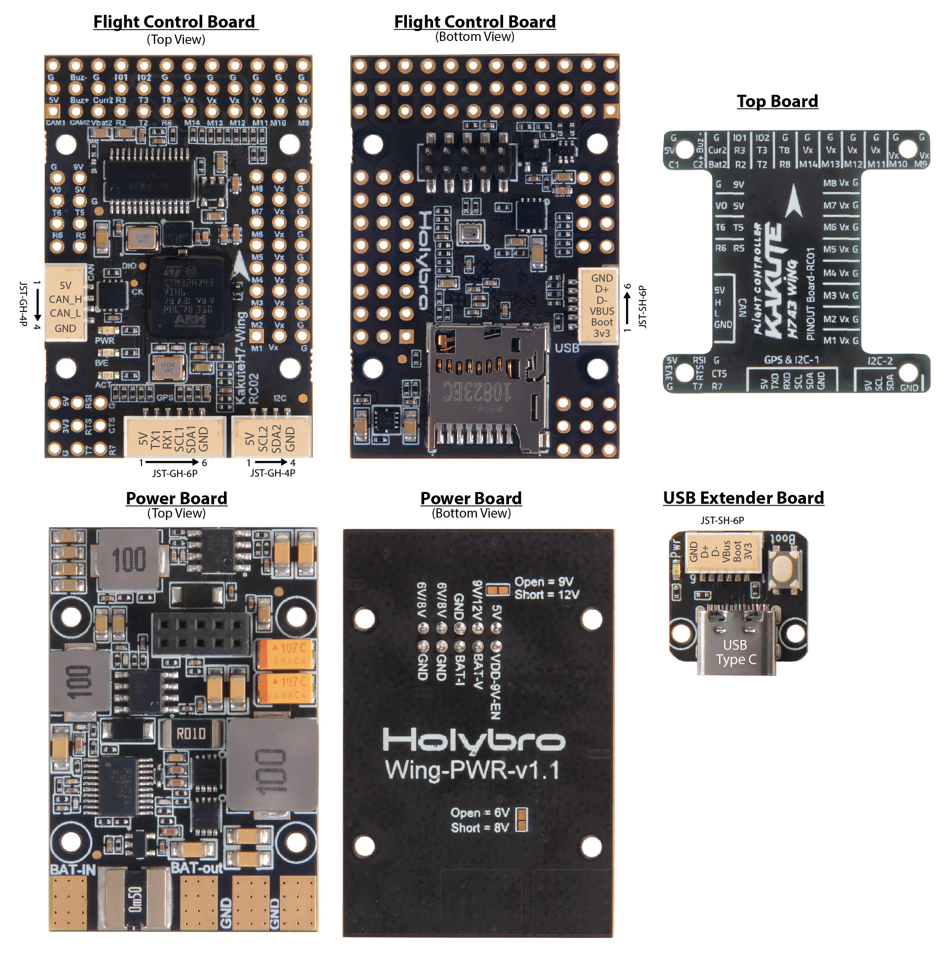 Firmware for this board can be found here in sub-folders labeled “KakuteH7-Wing”.