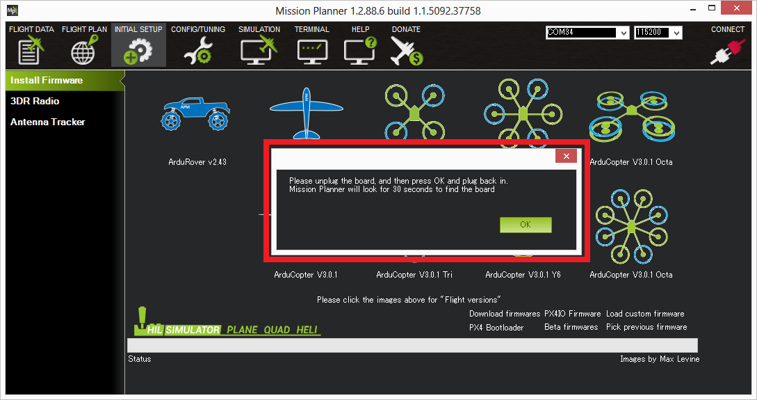 Mission Planner: Install Firmware Prompt¶