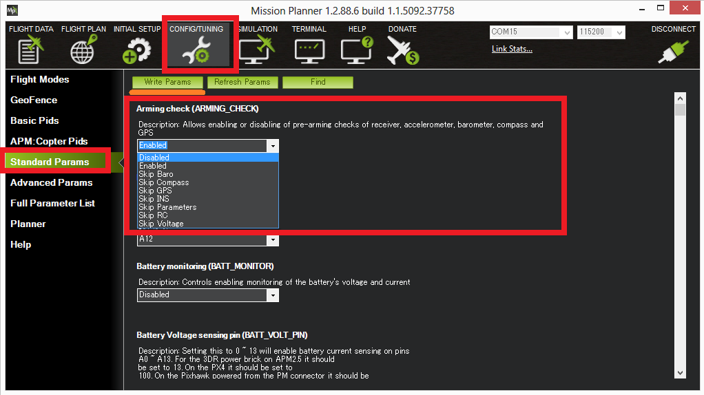 Go to Mission Planner’s Config/Tuning >> Standard Params screen