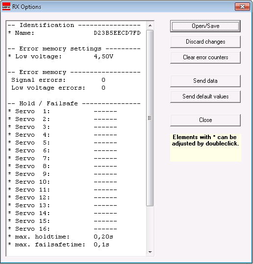 To complete the SRXL activation on B/D port click “Close” in the “RX Options”-Window and “Close” in the “RX/RF DataManager”-Window.