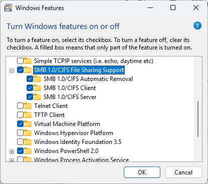 Enable “SMB 1.0/CIFS File Sharing Support”
